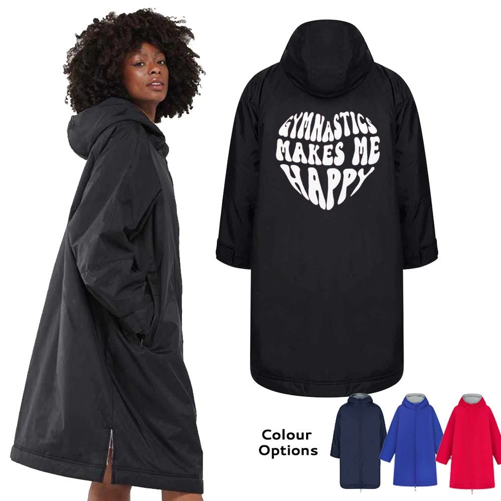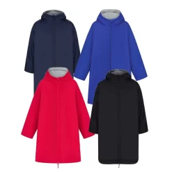 Stay warm and ready with our quality customisable all-weather changing robe. Designed for athletes in all sports including gymnastics, trampolining, and dance. Whether youβre preparing for a performance, training outdoors, travelling to training or waiting between events, this robe offers superior protection from the elements. Personalise your robe with your team name or logo to showcase team spirit in style. Available in both child and adult sizes, and in four bold coloursβblack, navy, red, and royal blueβ our robe ensures you stay comfortable, dry, and focused on your routine, no matter the weather. Perfect for keeping warm during outdoor sessions or in chilly venues!