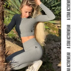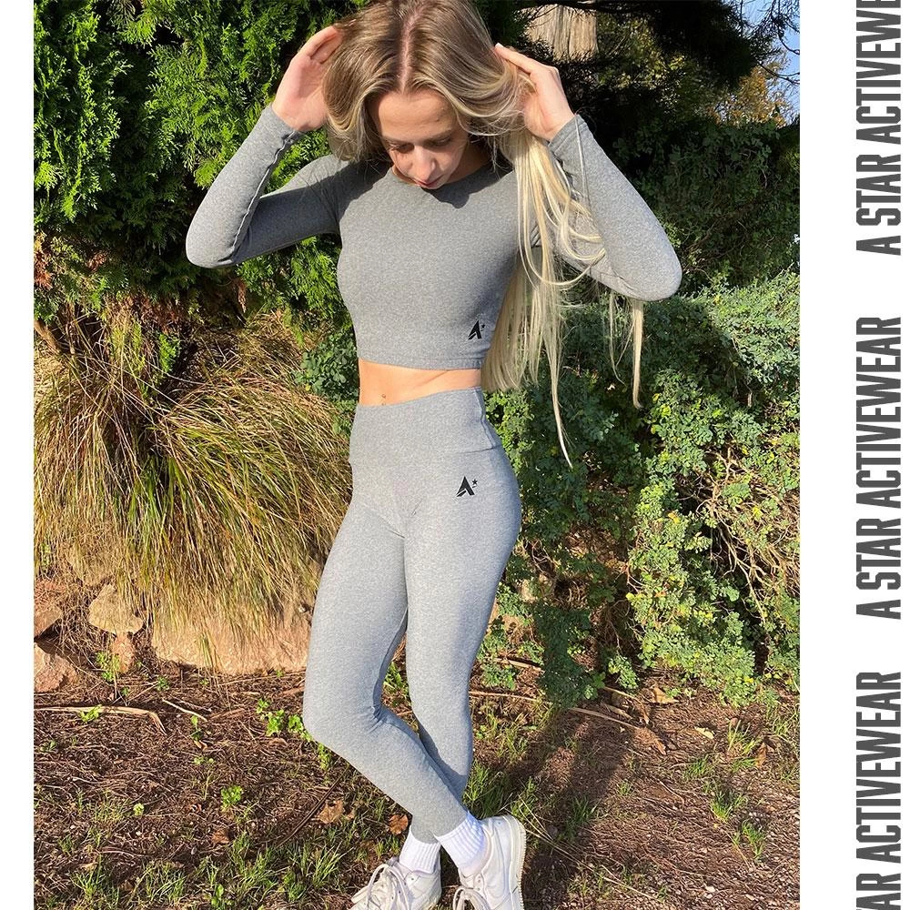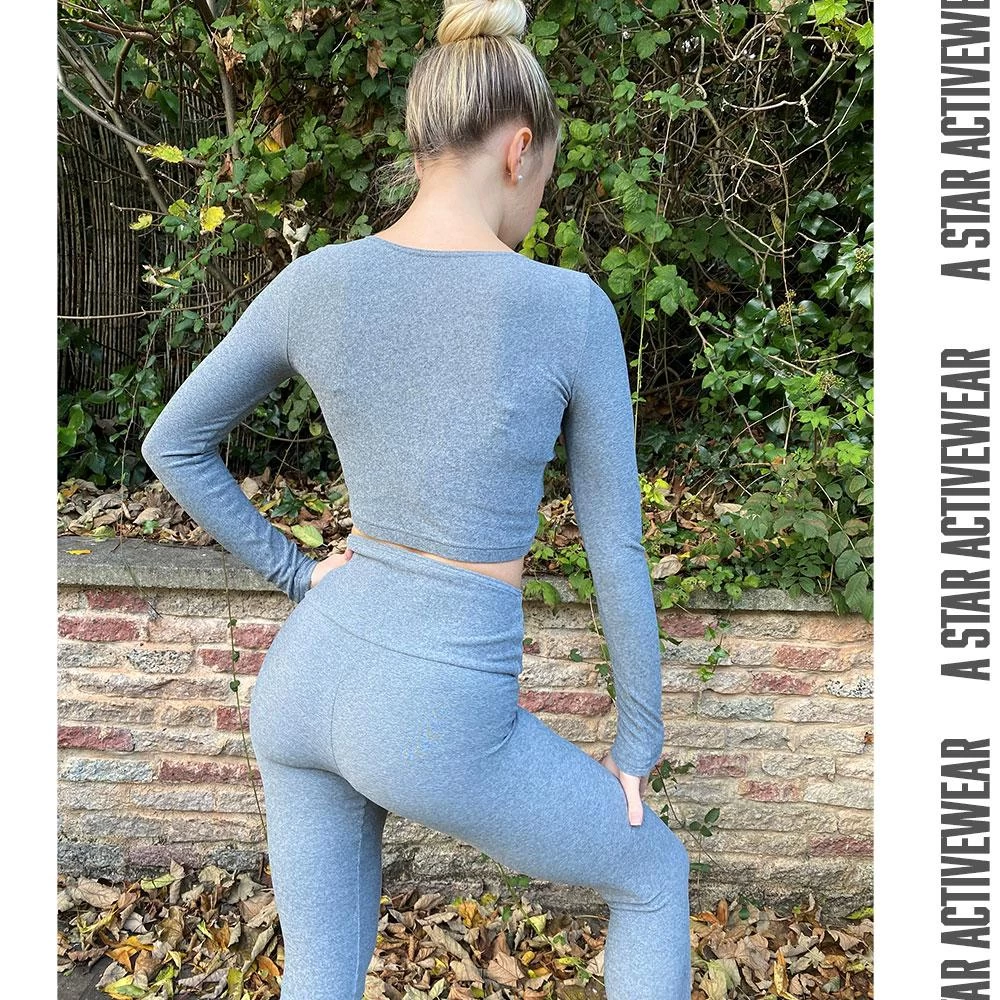 This stunning set is designed with comfortable in mind. The fabric is soft and breathable in a lovely shade of grey. Our long sleeve crop top is ideal for working out and wearing under your favourite hoodie. The yoga leggings have a high waist for extra comfort.