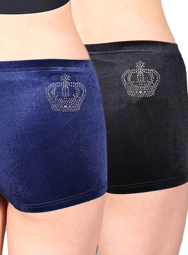 Velour Shorts with a beautiful Tiara detail in diamante, available in navy and black velour.