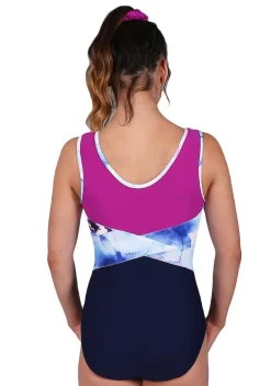 - Navy and Magenta Matt leotard with pretty Monet flower details