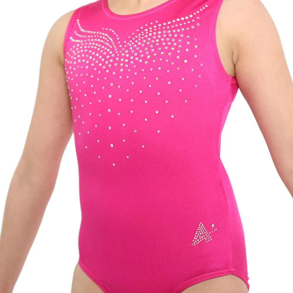 LULA – Cerise lycra adorned with hand applied diamante. This is the perfect leotard for training and competitions, the soft lycra base will keep you cool as you training and the diamante will catch the light as you preform. Available in several colour options.