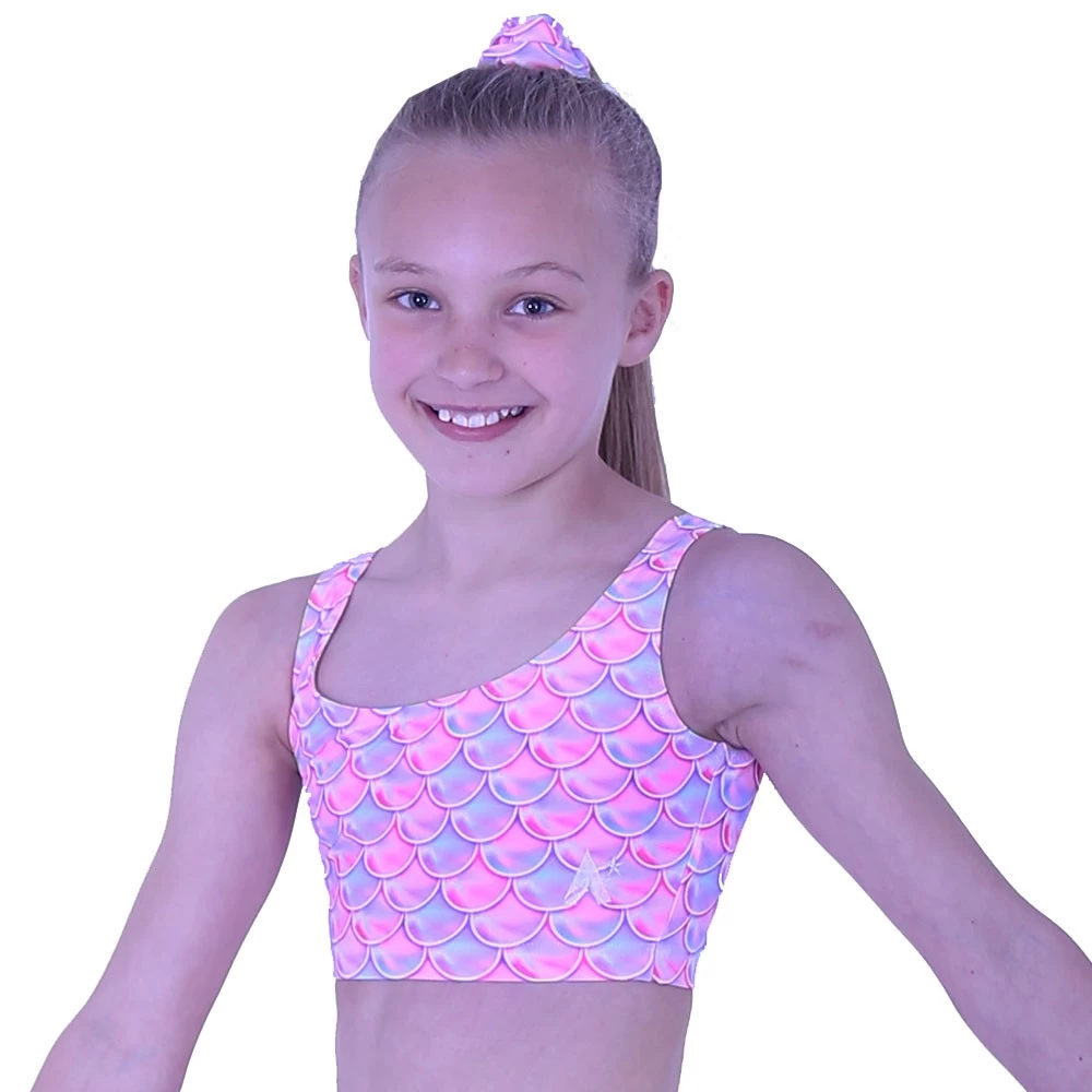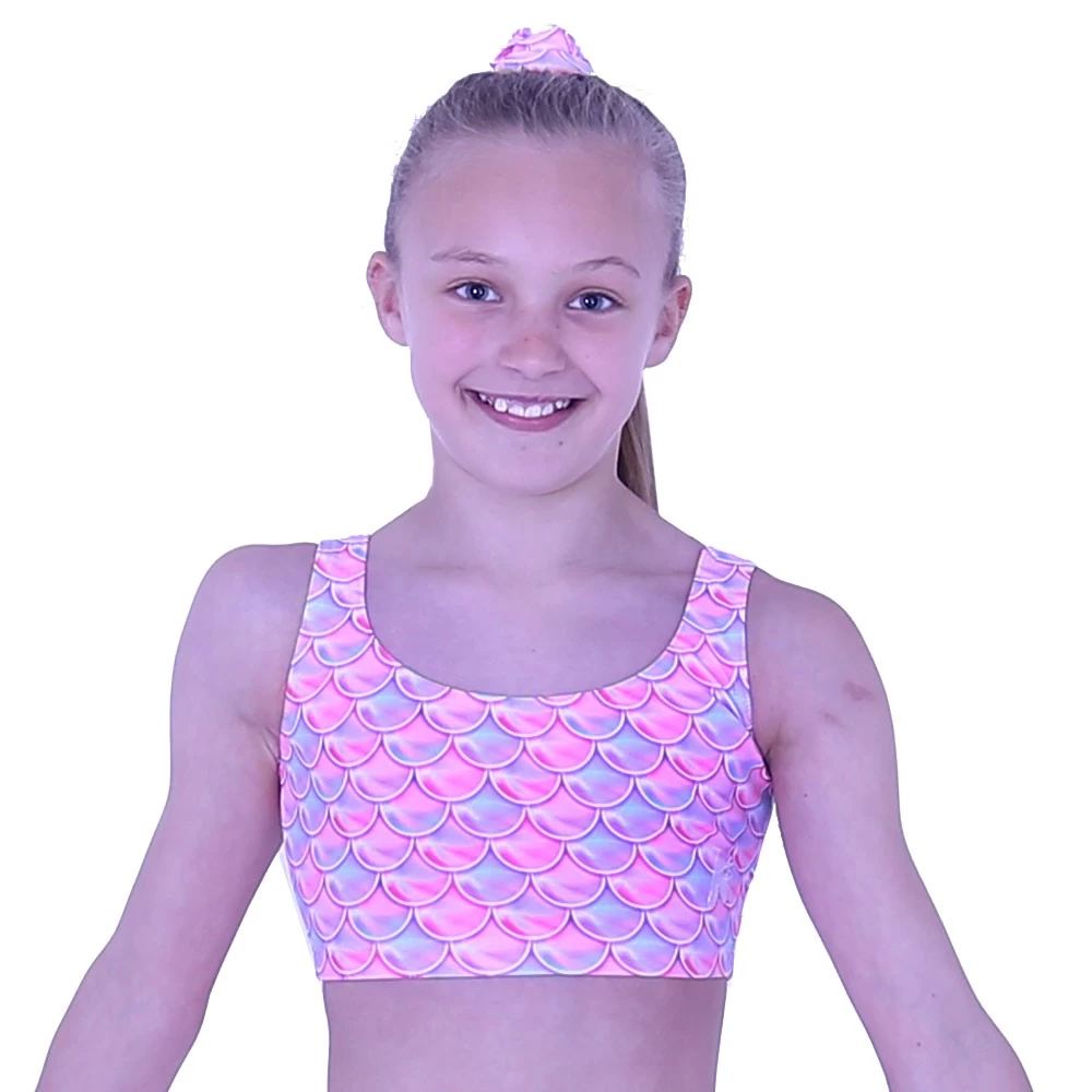 Comfortable training crop top in our mermaid lycra, matching leggings and shorts available.