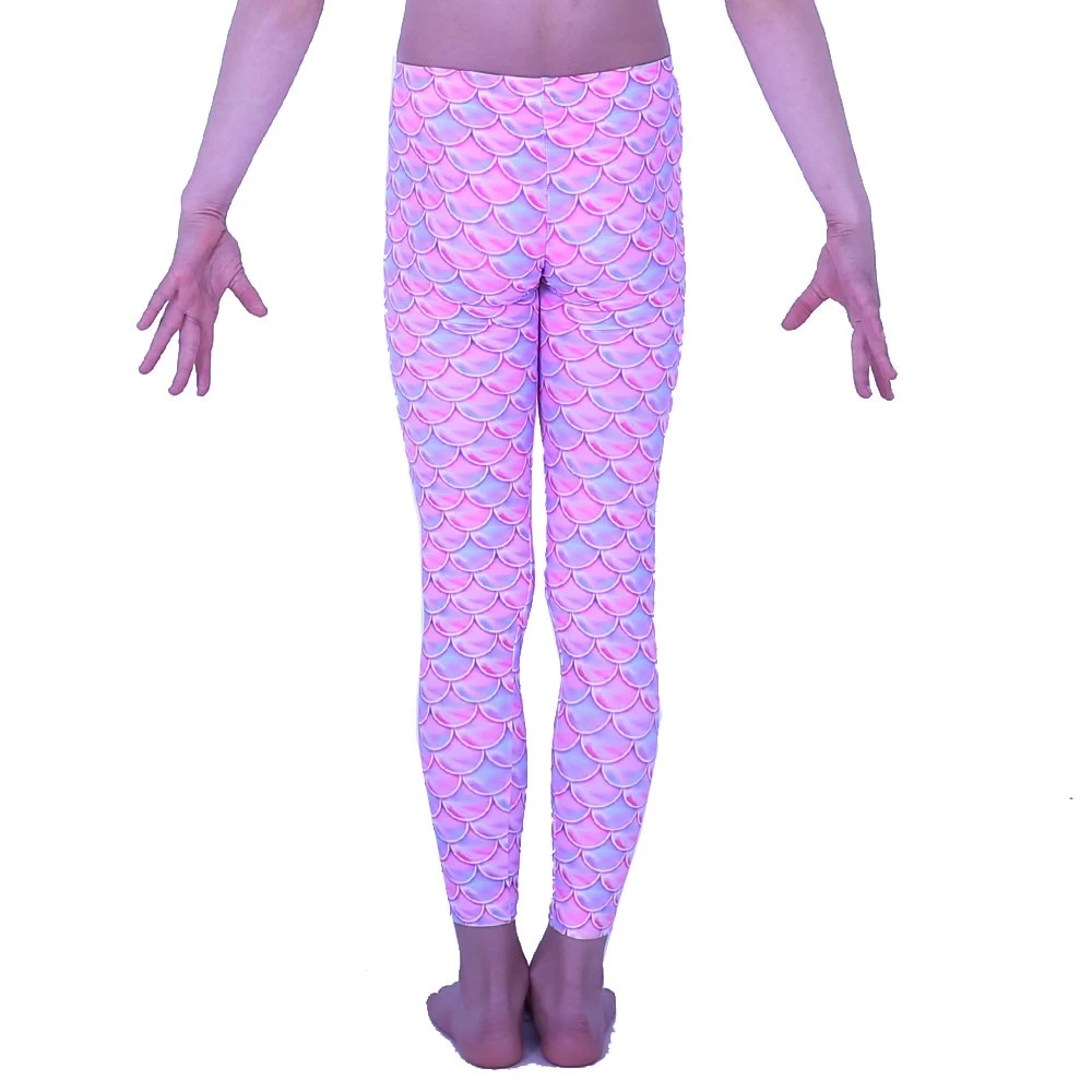Comfortable ankle length girls leggings in our mermaid lycra, matching crop top available.