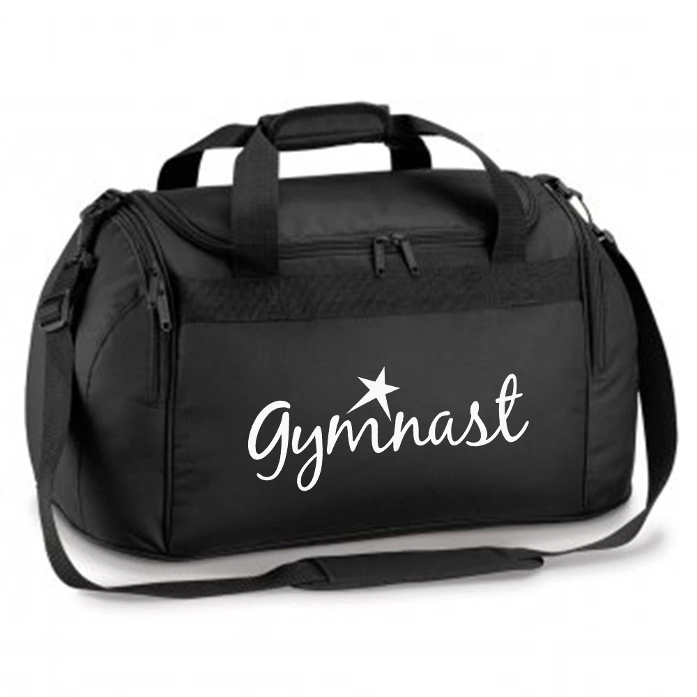 Holdall bag with White gymnast print. This holdall is ideal for the school and gym. This holdall has a main compartment, and separate side pockets. The capacity of this bag is 26 litres. Its dimensions are 54 x 25 x 28cm. Making it the ideal size for your gymnastics kit. We can add your name to our holdall bags to avoid mix-ups at school or in the gym.