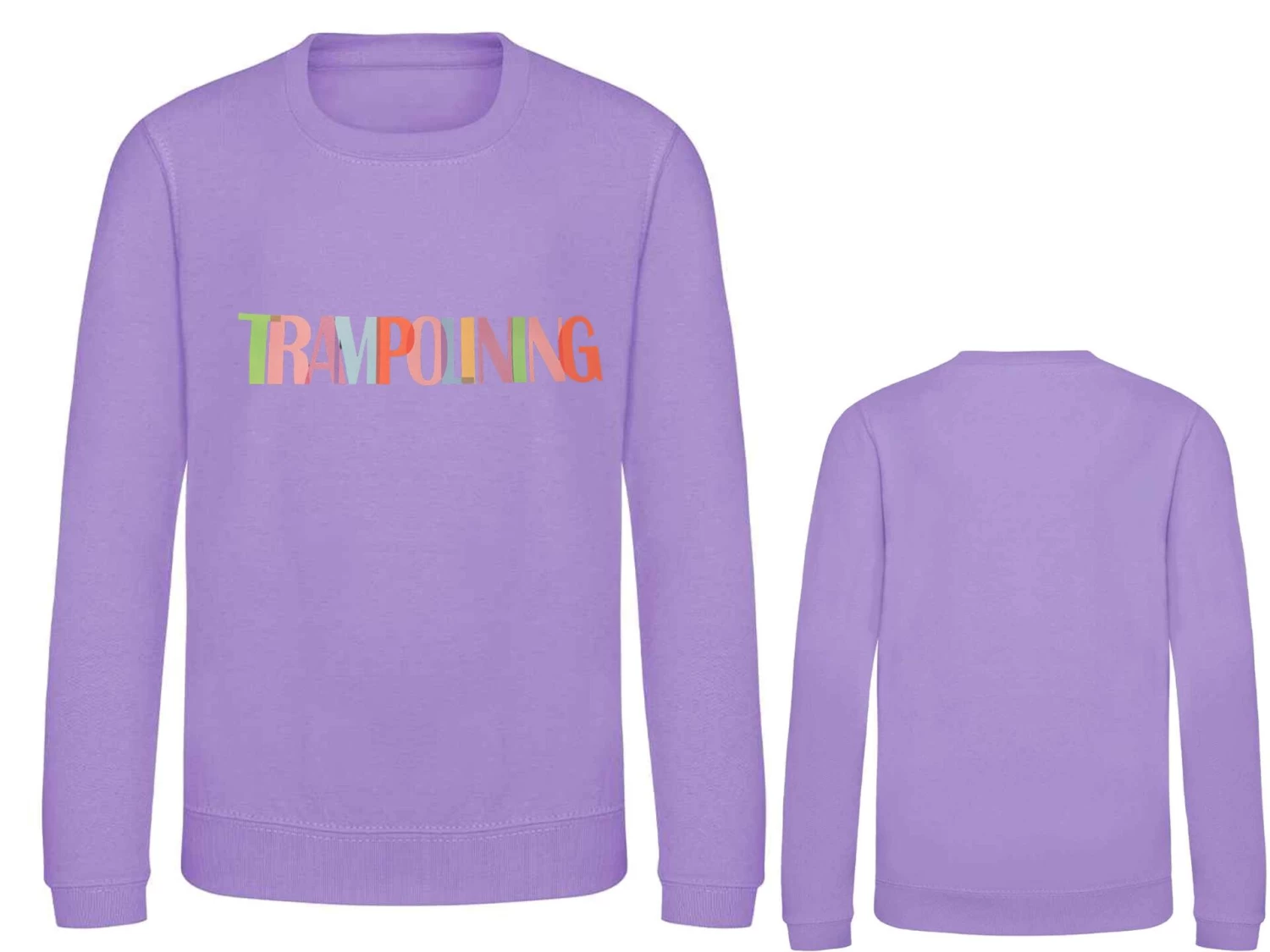 Printed Trampolining Sweatshirt. Available in other colours and with other sports, words or slogans. For a free mock-up or quote, please get in touch!