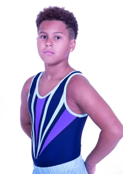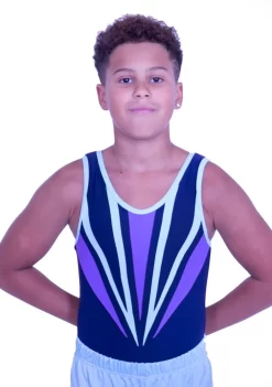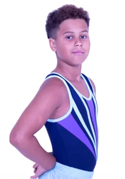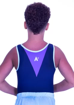 RAEGAN – BV545:- Boys Sleeveless Leotard In Navy, Lilac And Aqua