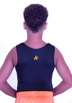 ROBBIE – BV407:- Boys Sleeveless Leotard In Black Shiny Lycra With Monster Top