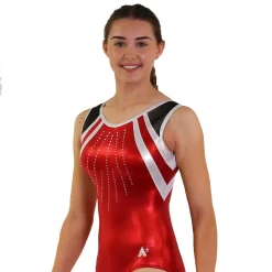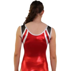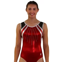 Red leotard for gymnastics. We can also make this leotard as a sleeved leotard for competitions.