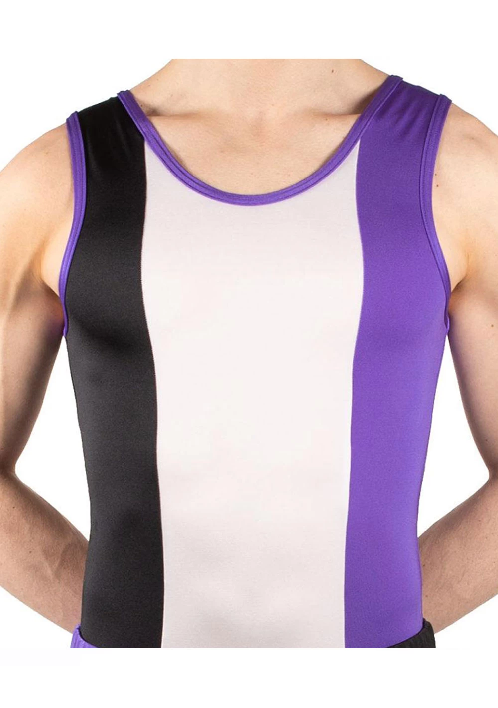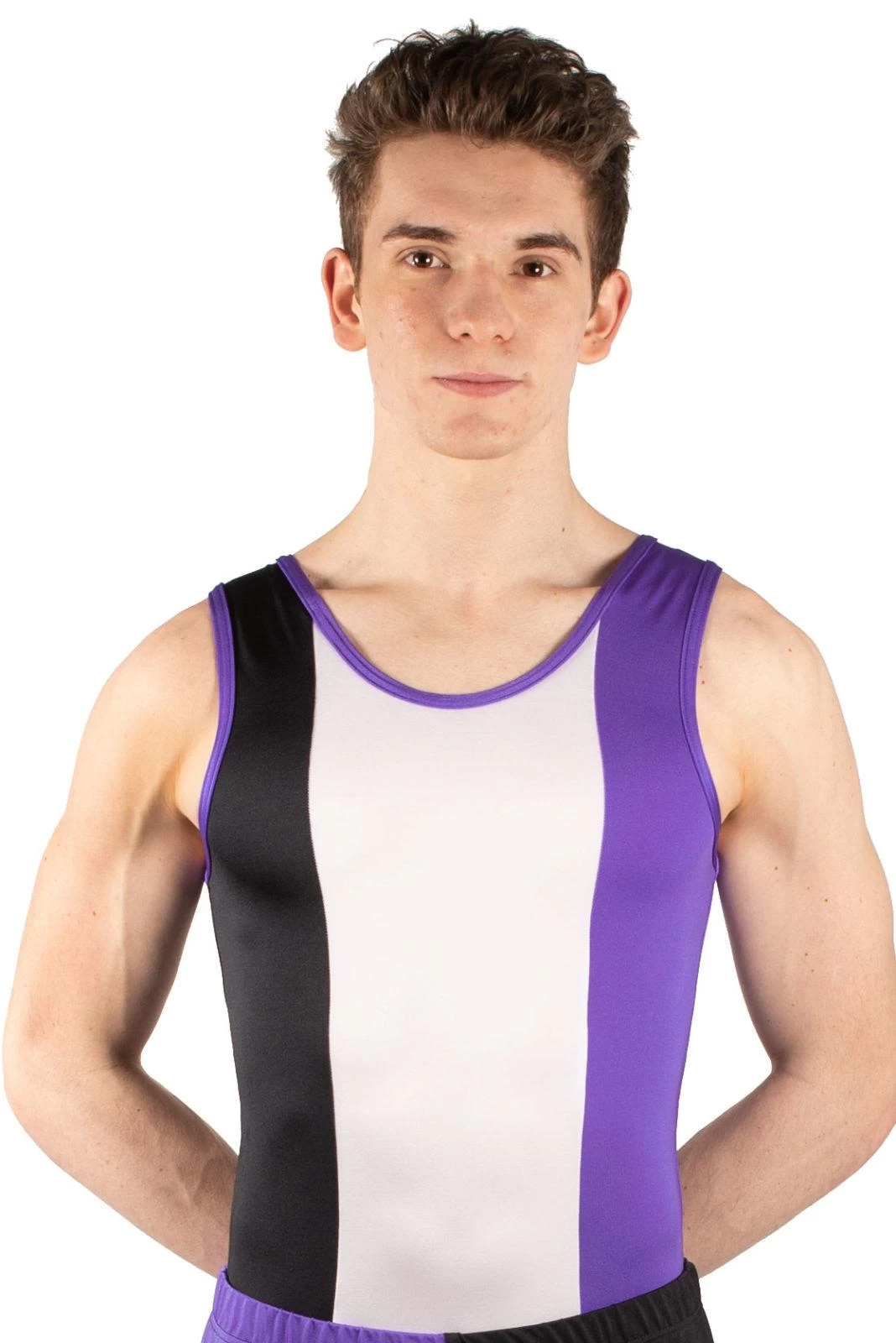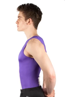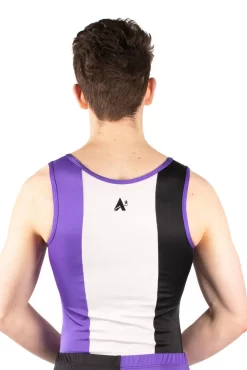 Boys Black, purple and white leotard. Bold design, great for competitions.