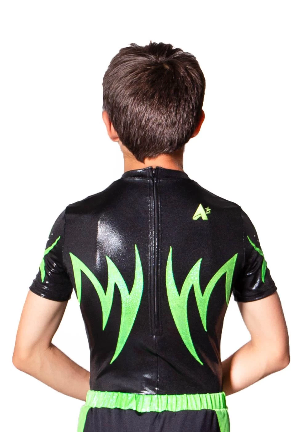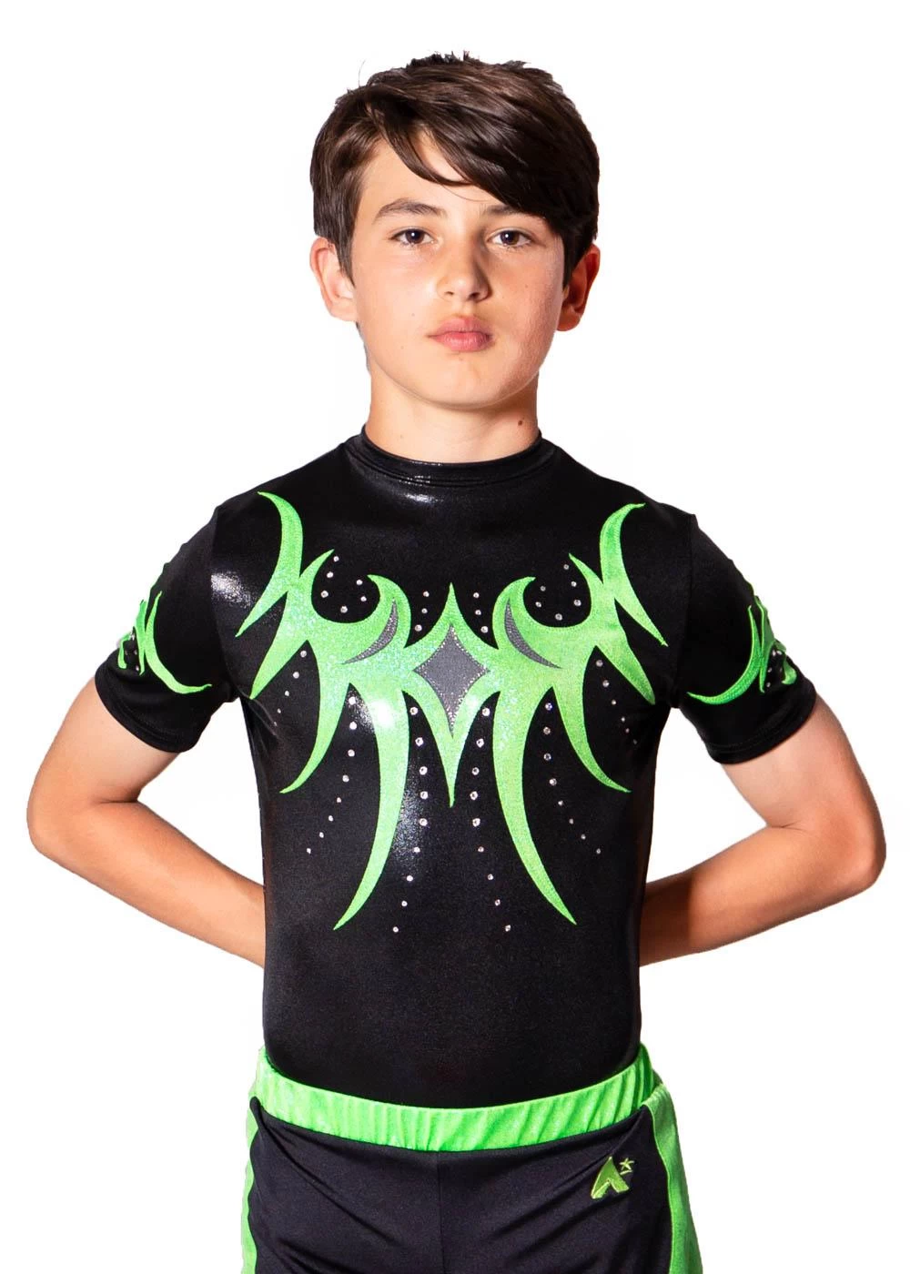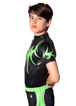 - Black Shimmer leotard with Flo Green details