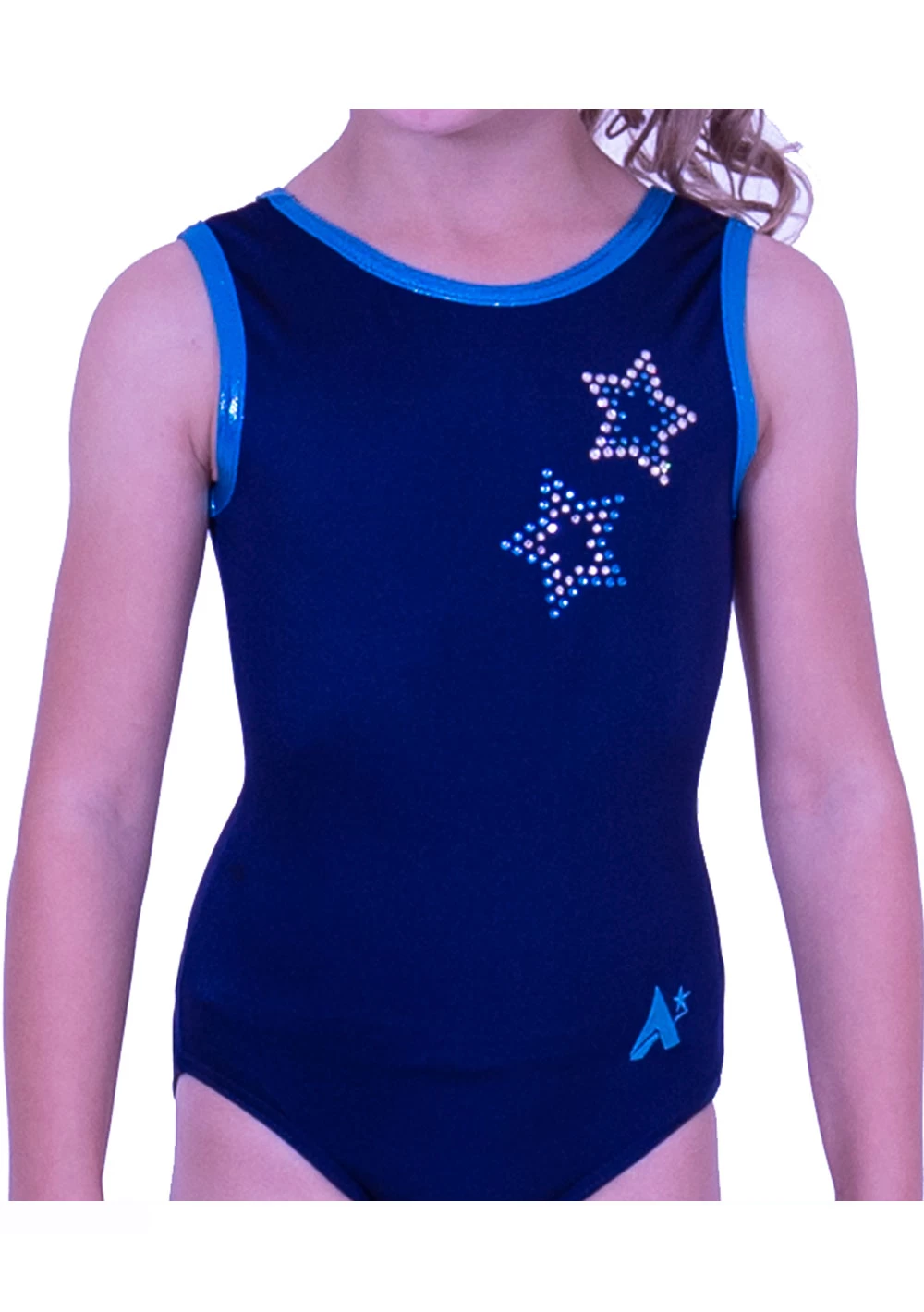 TRINITY – D70:- Navy Lycra Leotard With Star Diamante