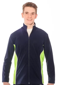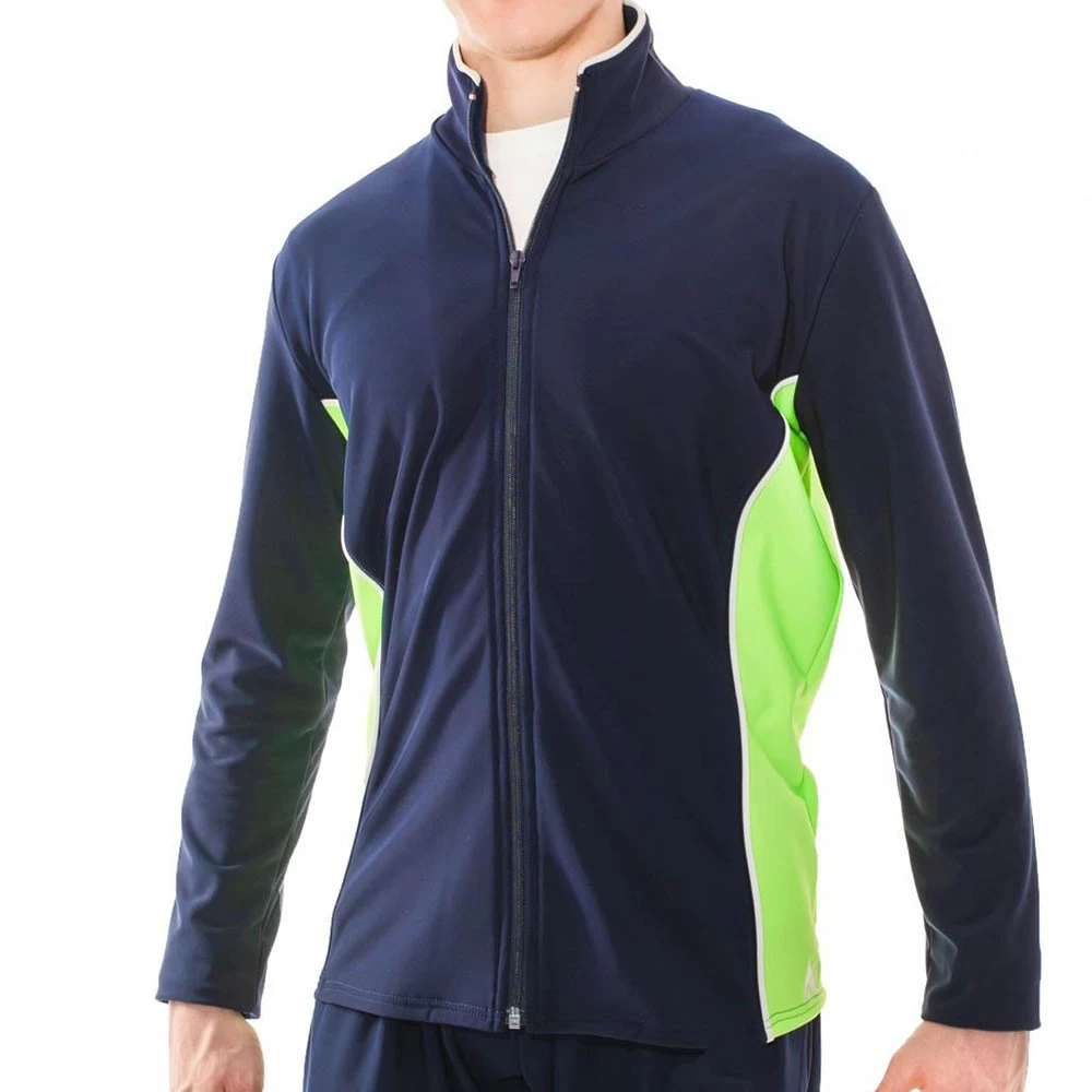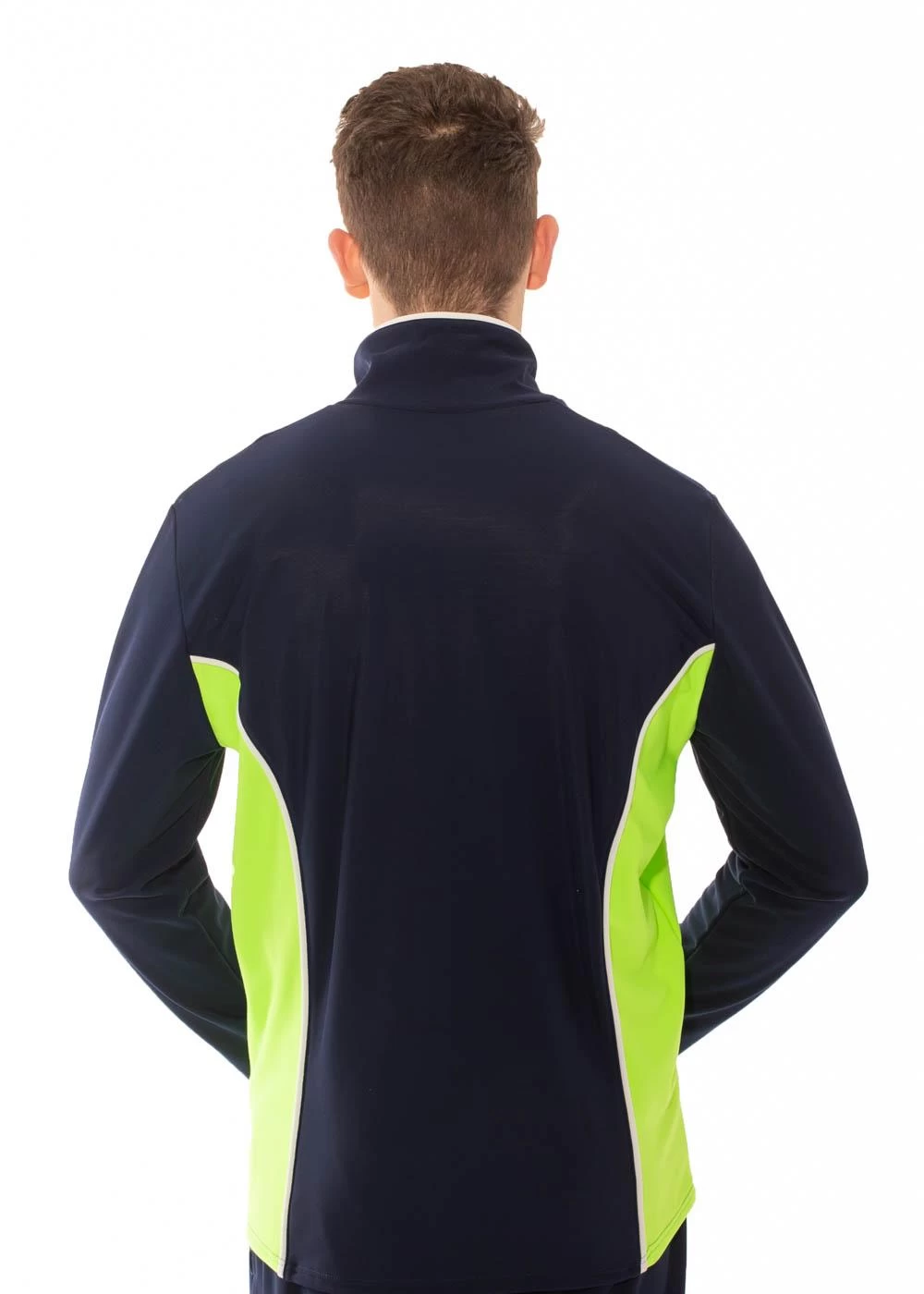 TS12B Mens tracksuit jacket in Navy and Flo Green Microtex with White Microtex piping.