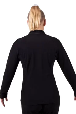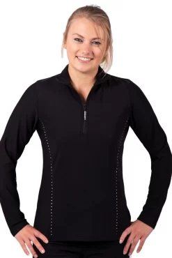 Ladies TS12H half zip style tracksuit jacket. We have sourced a top quality tracksuit fabric that works well for all sports. Microtex is a breathable, fleece lined fabric which boosts the natural moisture wicking process. Pilling resistant and bacteriostatic. It has a fantastic 2-way stretch for great fit and longevity of wear after washing and offers UV protection for outdoor sports. Lovely, hand applied diamante gems have been added to the front of this jacket to create a shaped look to suit all body shapes.