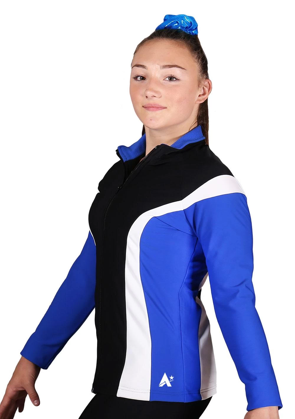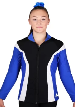 Our ladies tracksuits have been designed to be flattering, smart and to keep you warm during your sports. Our TS17 Royal Blue Tracksuit Jacket is a popular track top for gymnastics team and sports groups. This girls tracksuit jacket is made from Black microtex with White contrast panels and Royal blue sides, arms and collar. A classic colour combination that is striking. Our high quality microtex boosts natural wicking properties as it is made from a brushed, breathable fabric. As we hand make our tracksuits in Britain, we can make embellished tracksuits in your team colours and add your group name or logo to them in print, diamante or embroidery. We recommend making this into a personalised tracksuit sports jacket for your team by adding your team logo. We have lots of customisation options for competition tracksuits and a friendly admin team to help create your perfect designer tracksuit jacket or tracksuit set. Our jackets do not include pockets, if you would like to add the please contact us via email or telephone.