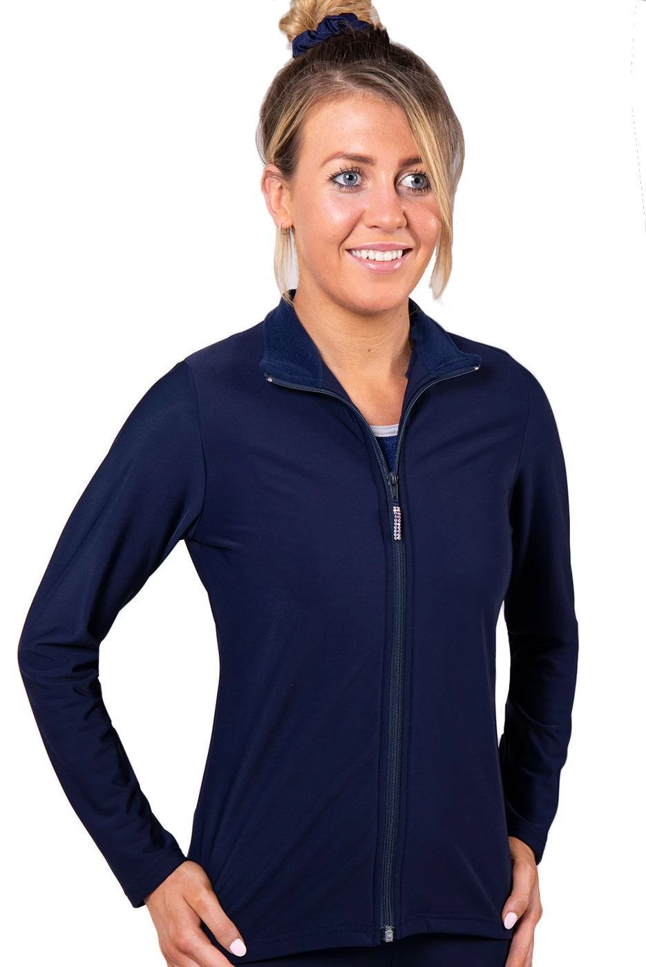 Our TS6 design tracksuit jacket is a classic, simple ladies track top. Designed for staying warm before, during, and after educational and sports gym sessions. This girls tracksuit jacket is made from Navy microtex. Our high quality microtex boosts natural wicking properties as it is made from a brushed, breathable fabric.