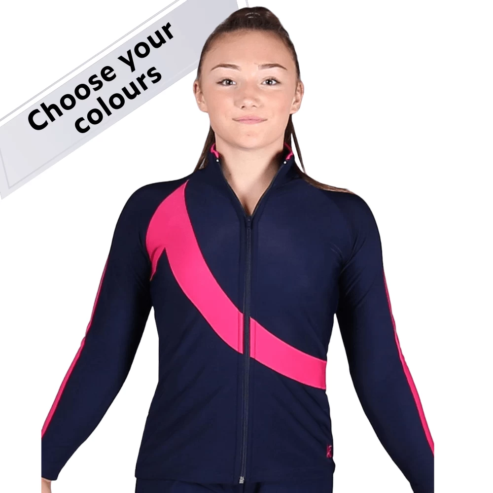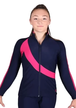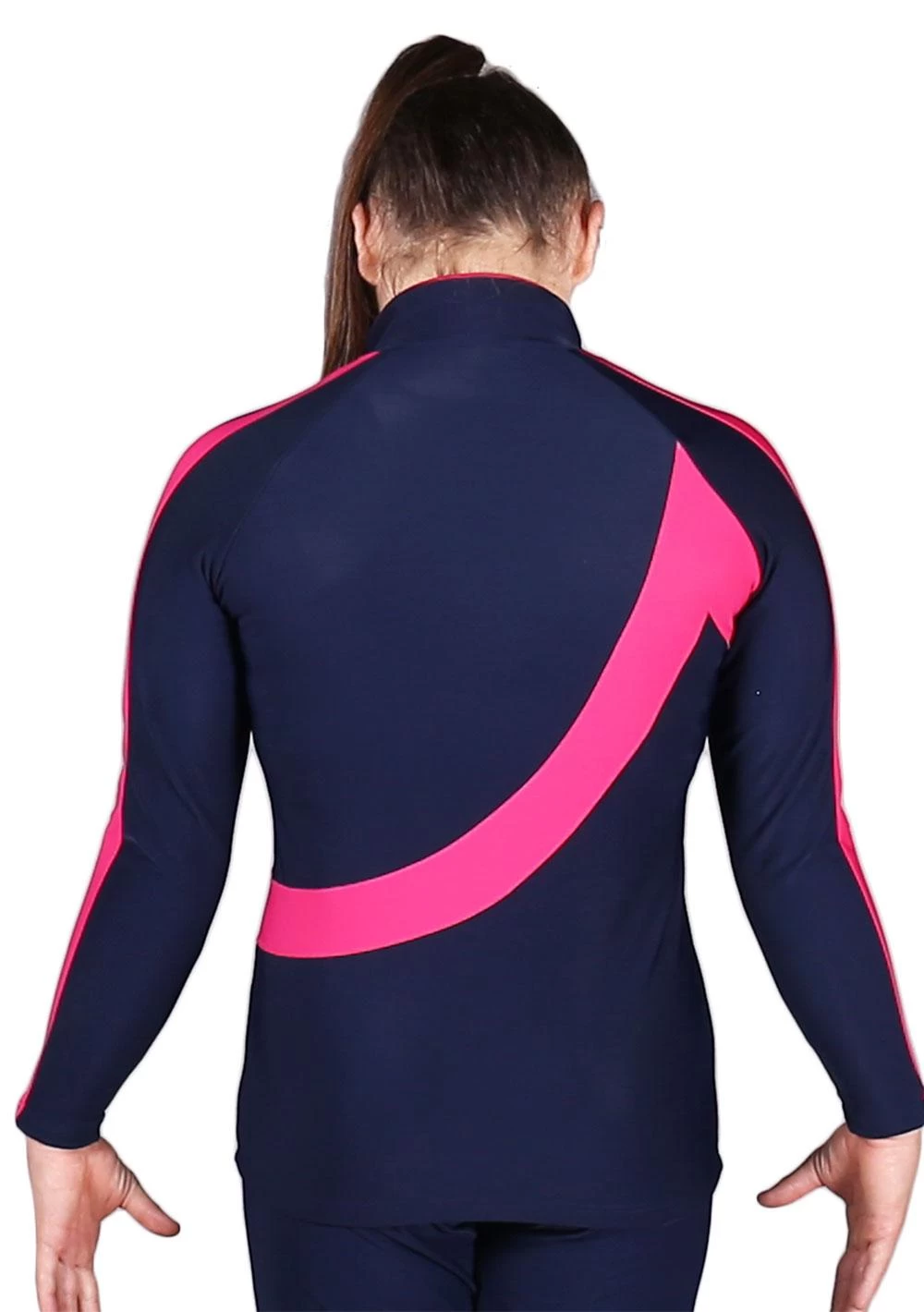 TS65 tracksuit jacket Womens in Navy and Pink Jacket in microtex. This striking design is great for standing out at competitions. This eye-catching design is made from our lovely microtex fabric which boosts anti-pilling properties.