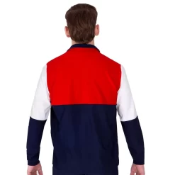 Our popular TS87B design is available in lots of colour combinations. This boxy style tracksuit jacket is a lovely mix of Navy, Red and White microtex.