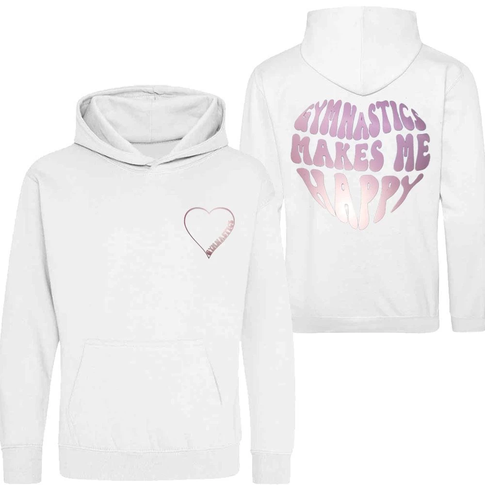 White and Rose Gold Hoodie with Gymnastics trampolining. Add your name for a totally bespoke item. The perfect gift for gymnast